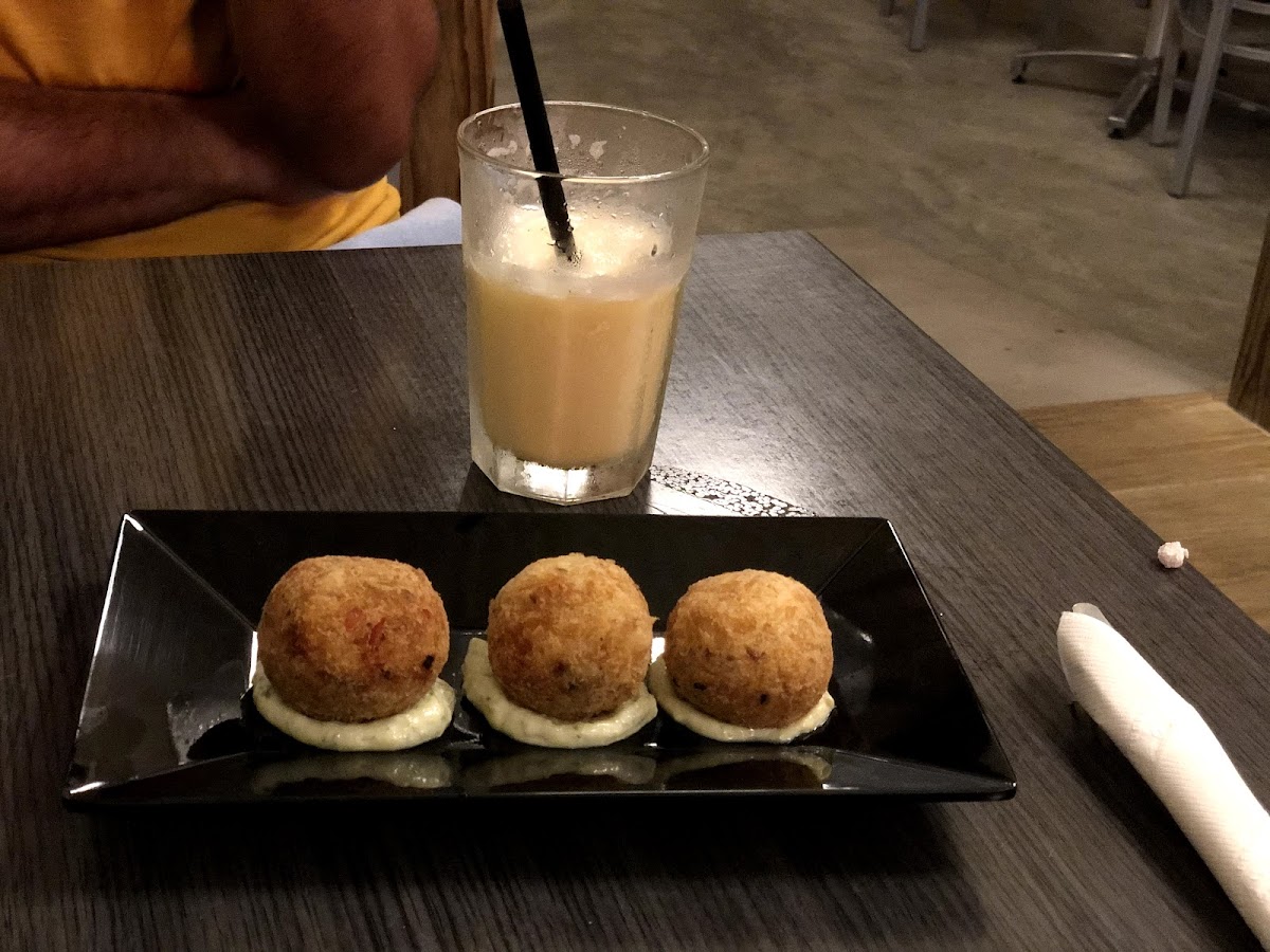 Had beans with Jimmy cakes, catch of the day, a couple of pina coladas and dessert. Best pina coladas on the island and the Jimmy cakes were fabulous, the fish was really good too. As we headed back to our villa we found we had a flat, the bar tender got us in touch with the rental co. and back on the road. Outstanding service!