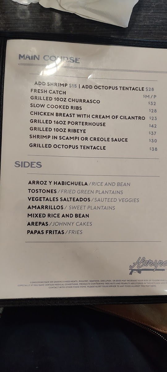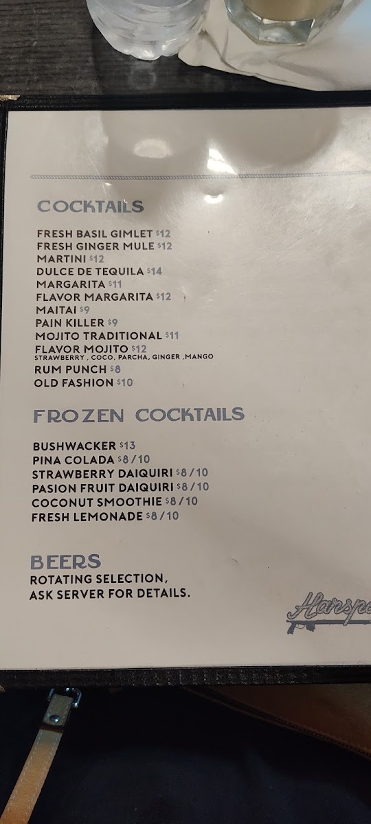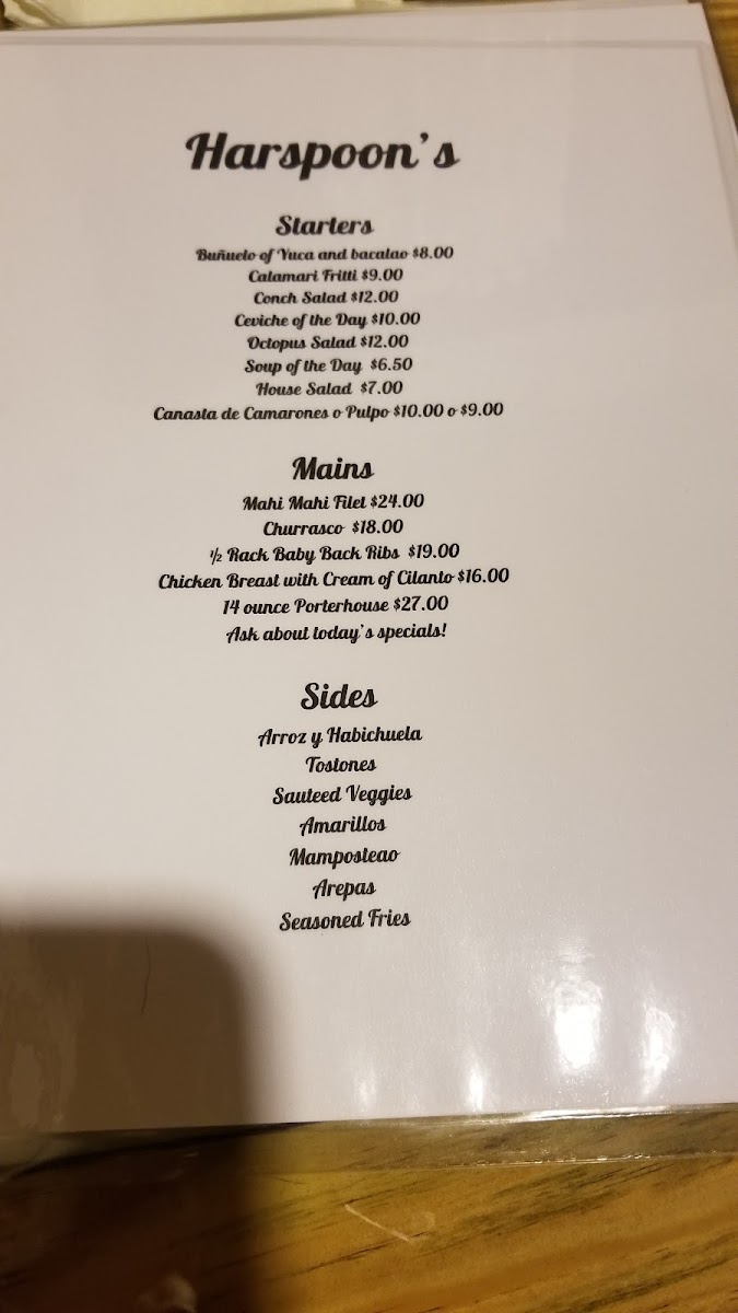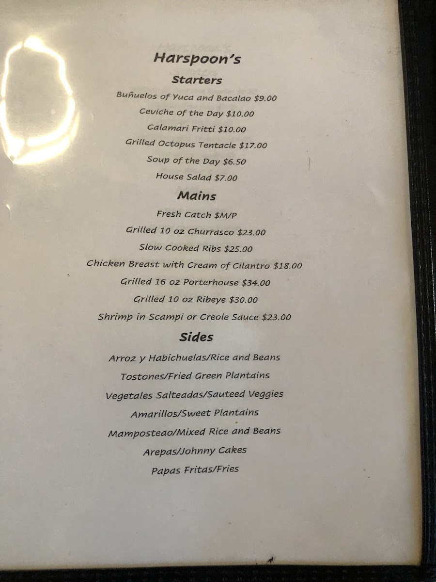 Harspoon's Menu